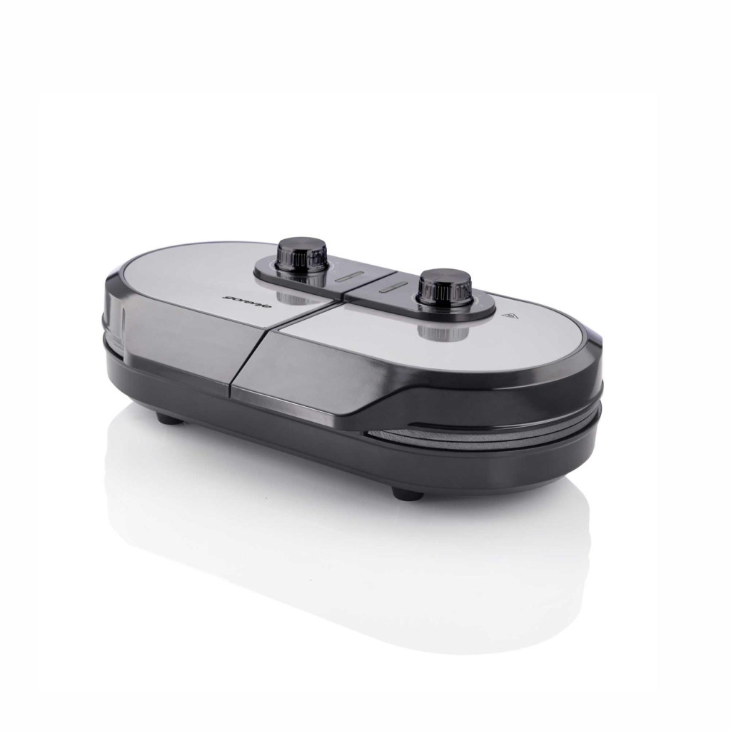 A Ø18 cm átmérőjű sütőlapok ideális méretű adagokat készítenek, ráadásul sütőlaponként külön szabályozható hőmérséklettel működnek, így egyszerre eltérő állagú gofrikat is süthet. A hideg tapintású fogantyú biztonságos kezelést garantál, így a sütés közben sem kell tartania a forró felületektől. A beépített kábeltároló gondoskodik a rendezett és helytakarékos tárolásról, míg a kompakt méret (376 × 238 × 118 mm) miatt könnyedén elfér bármelyik konyhában.