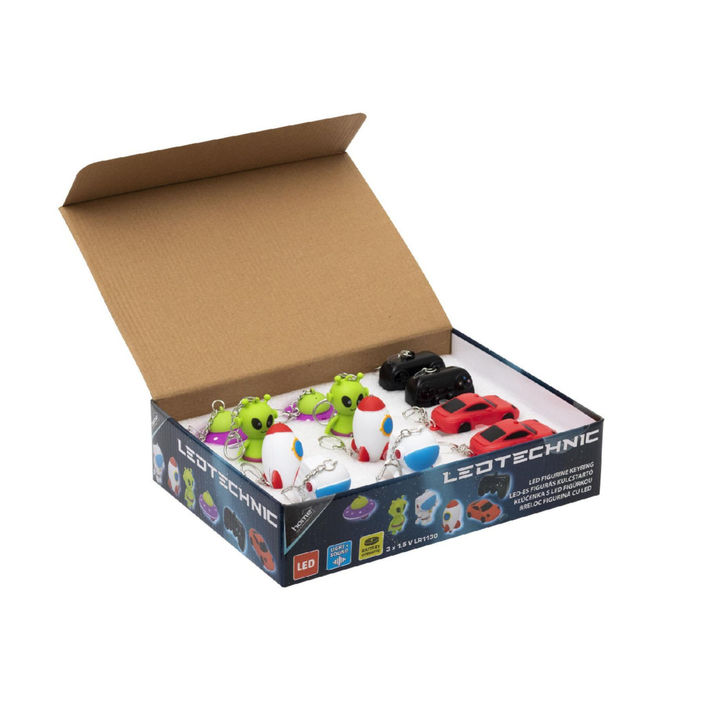 HOME LEDTECHNIC LED-es kulcstartó, figurák, tápellátás 3xLR1130 gombelem, 12 db/display