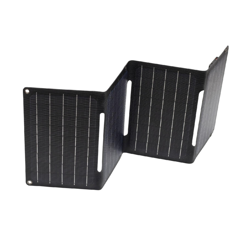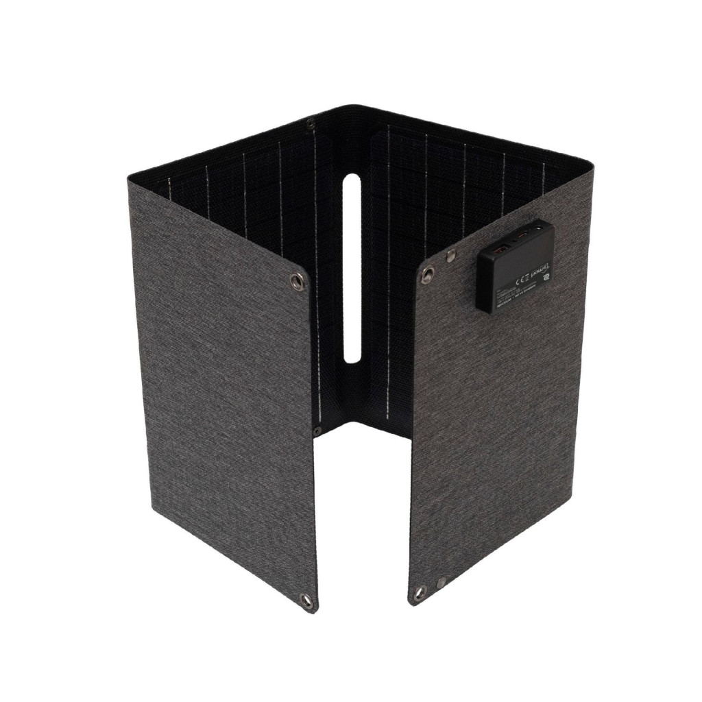 HOME MSC20W hordozható napelemes USB töltő, összecsukható, 20Watt, USB-A + USB-C + DC kimenet, PD gyorstöltés, LED töltésjelző, felakasztható, tartozék karabinerekkel