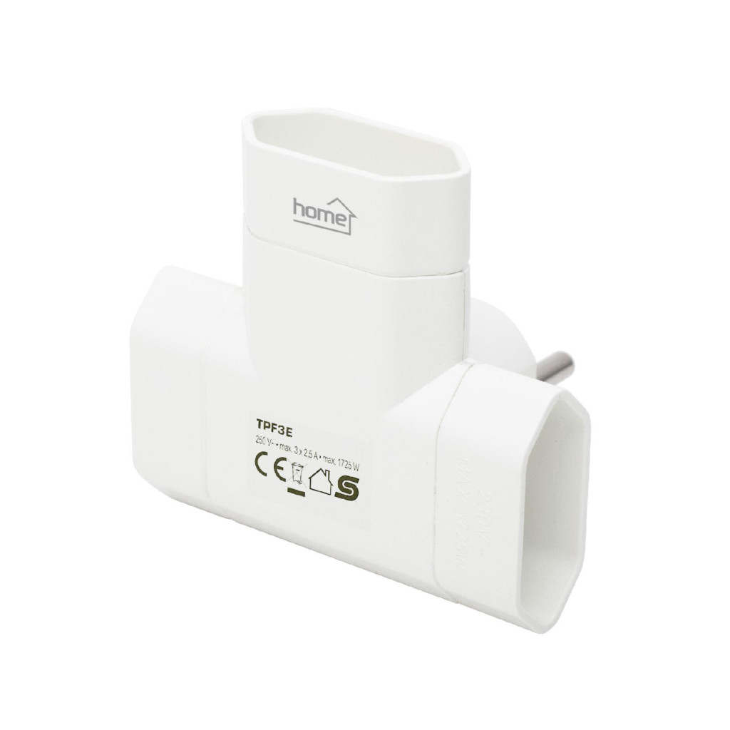 HOME TPF3E T elosztó, 3-as EURO aljzat, 250V~, max. 1850 W, 3x2,5A, fehér