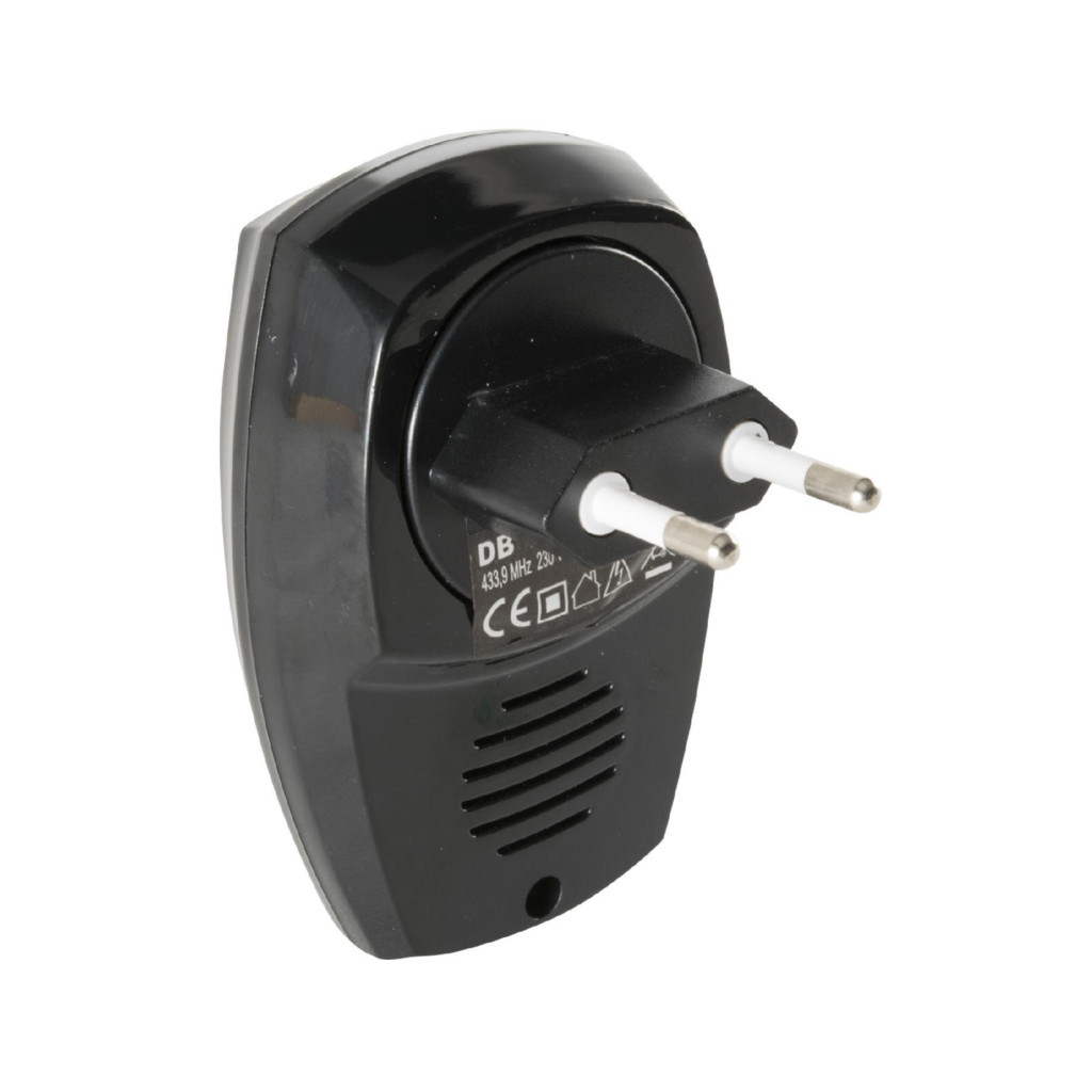 Home DB112AC vezeték nélküli csengő, 100m hatótáv, 36 dallam, többszólamú hangzás, 4 lépcsős hangerő, kék LED visszajelző, 230V-os tápellátás