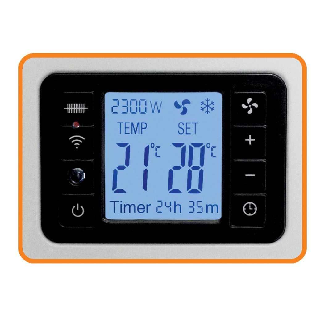 Ez a fehér színű készülék három fűtési fokozattal rendelkezik: 1000 W, 1300 W és 2300 W, így az igényeinek megfelelően szabályozhatja a hőmérsékletet. Az érintőgombokkal, távirányítóval és ingyenes okostelefonos alkalmazással egyszerűen vezérelheti a készüléket, akár távolról is. Az elektronikus termosztát segítségével pontosan beállíthatja a kívánt hőmérsékletet, miközben a fagyőr funkció biztosítja, hogy a helyiség soha ne hűljön le túlzottan. A külön kapcsolható turbóventilátor funkció gyorsabb hőelosztást biztosít, így még hatékonyabbá téve a fűtést. A 24 órás kikapcsolásidőzítés lehetővé teszi, hogy előre beállítsa a fűtési időpontokat, növelve ezzel a kényelmet és az energiahatékonyságot.