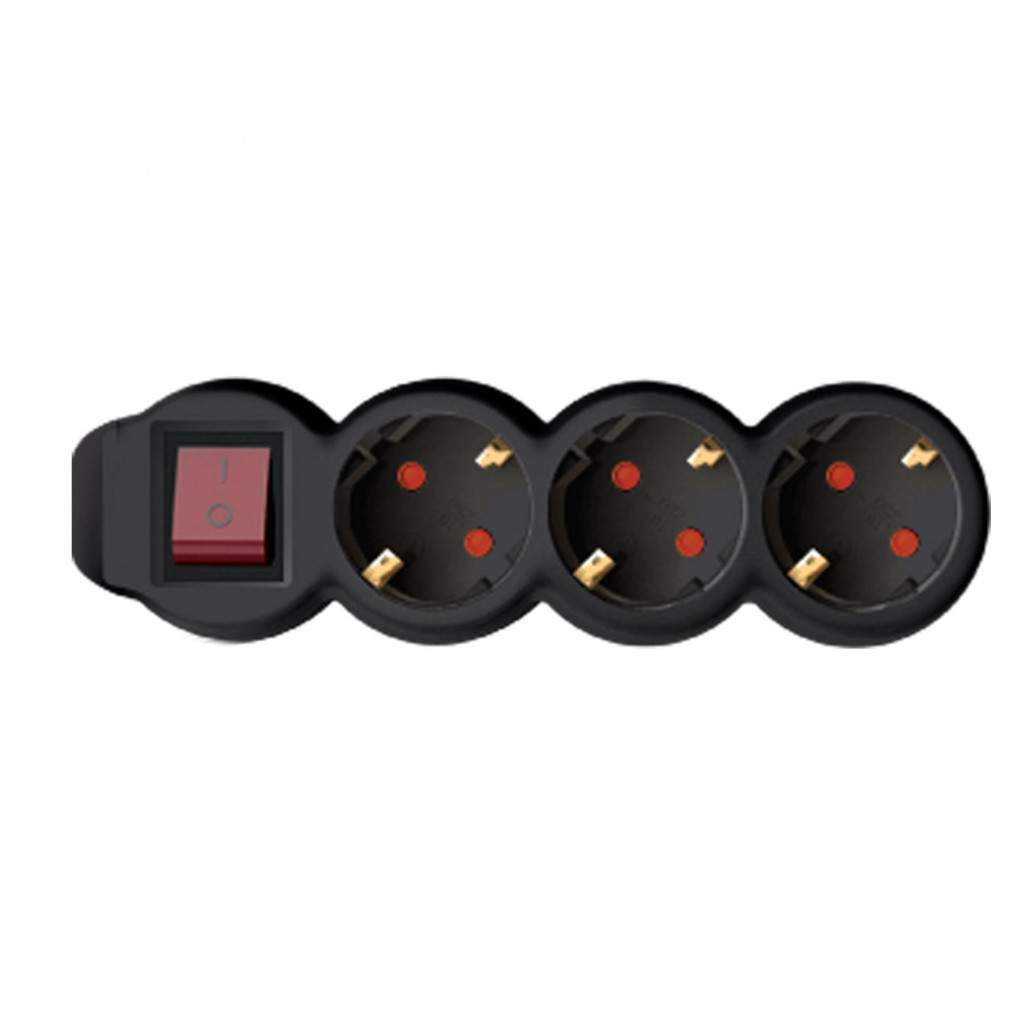 Home NV 3K-3/BK/1,5 hálózati elosztó, 3 m, H05VV-F 3G1,5 mm2 kábel, kétpólusú kapcsoló, IP20 kivitel, 3 védőérintkezős aljzat, max. 3500W, fekete