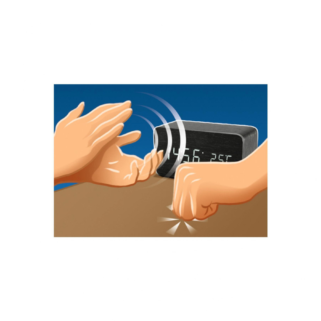 Home OC 04 digitális LED ébresztőóra, valódi faburkolat, tapsra aktiválható fehér kijelző, dátum és hőmérséklet kijelzés, elemes vagy hálózati tápellátás