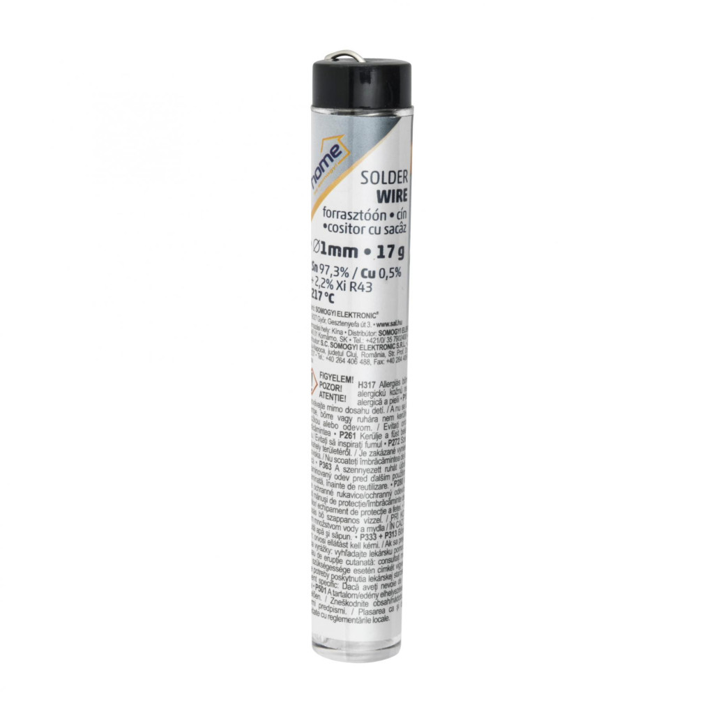 Home SWCU 1/17 forrasztóóntoll, átmérő 1mm, Sn/Cu: 97,3%/0,5%, gyanta: 2,2 %, nettó súly: 17 g, méret:∅17x91mm, ólommentes!