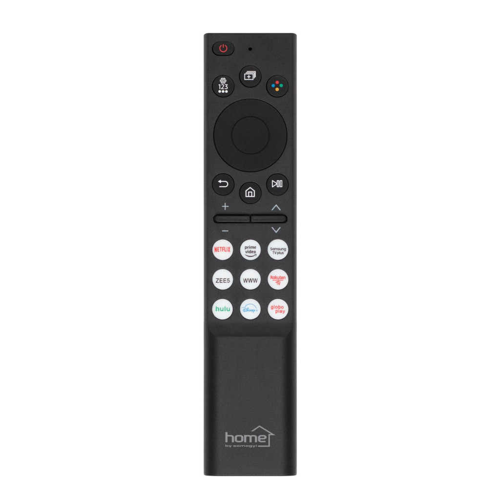 A Home URCSAM3 távirányító kifejezetten Samsung okos TV készülékekhez készült, hogy a televíziózás élményét könnyebbé és kényelmesebbé tegye. Az előre kódolt rendszer garantálja, hogy az eszköz azonnal használatra kész legyen, így Önnek nincs szüksége időigényes beállításokra. Csupán helyezzen bele két darab AAA elemet (nem tartozék), és máris irányíthatja televízióját.