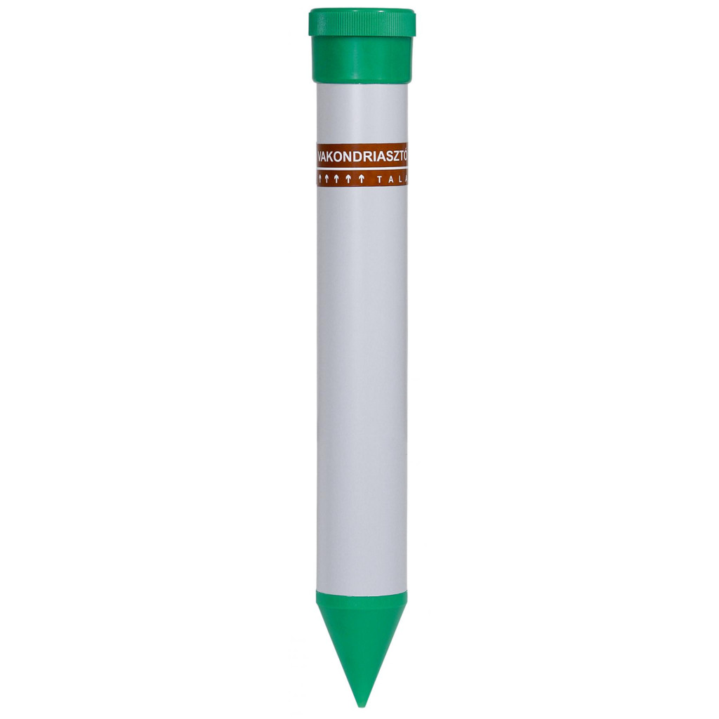 Nagyméretű földtulajdonnal rendelkezik, és ennek gondozása során rendkívül fontos, hogy a növényzetben ne essen semmiféle kár? Ez esetben Önnek a VK 01-es vakondriasztó karóra lesz szüksége! A vakondriasztó az előnyös szerkezeti tulajdonságának köszönhetően olyan hangrezgéseket bocsájt ki, amelyek garantáltan elriasztják a termésre káros rágcsálókat! (Ilyenek pl. a vakondok, mezei pockok vagy földikutyák.) A VK 01 típus további előnye, hogy az adott talaj minőségétől függően akár 2000 m²-es terület védelmére is alkalmas. Egy garnitúra elemmel pedig akár 3-4 hónapot is képes működni. Ha Ön mielőbb megszeretne szabadulni a talajban és növényzetben egyaránt károkat okozó rágcsálóktól, akkor ne habozzon és rendelje meg webáruházunkból a vakondriasztó karót!