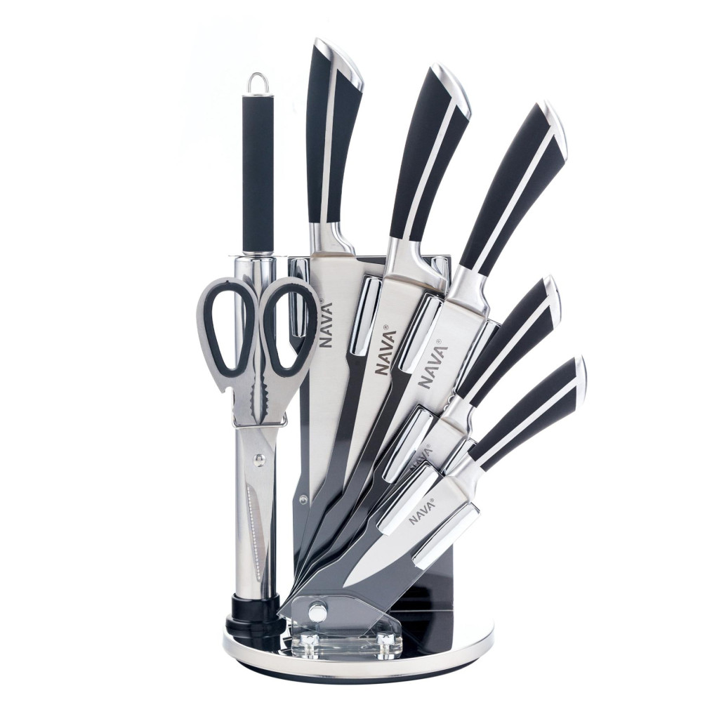 Nava 10-167-021 7db-os rozsdamentes acél késkészlet akril állvánnyal, forgatható
