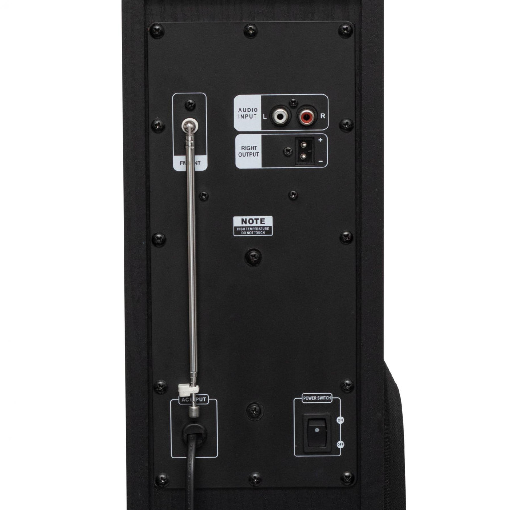 Az elegáns MDF fa konstrukció nemcsak esztétikus, de robusztus is, így hosszú távon is megbízhatóan működik. A LED kijelző fényereje állítható, a rendszer pedig érintőgombokkal is vezérelhető, ami modern és könnyen kezelhető felhasználói élményt biztosít. A csomag tartalmaz egy távirányítót, amely két AAA elemmel működik (nem tartozék), valamint a szükséges audio csatlakozókábelt és dísztalpakat, amelyek a hangdobozok stabilitásáról gondoskodnak.