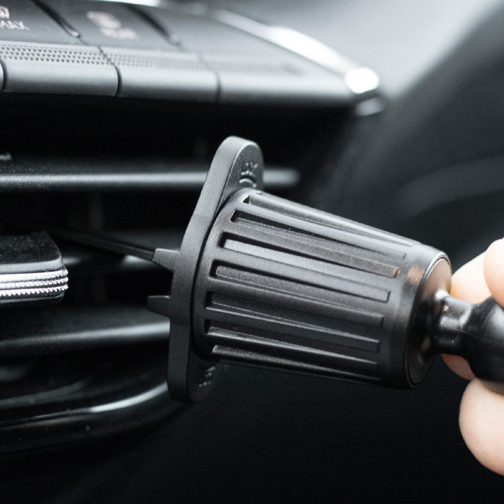 Az erős, fém akasztóval a tartó könnyen illeszkedik a vízszintes vagy függőleges szellőző lamellákhoz (10-36mm), míg a kb. 55-95mm telefon szélességig (kb. 4-7” képátló) alkalmazkodó kialakítás szinte minden készülékhez ideális.