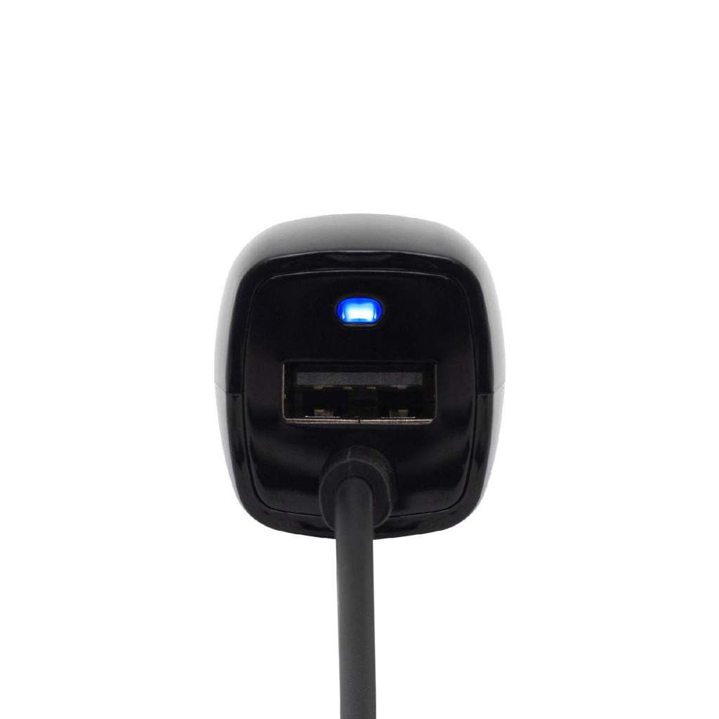 két készülék egyidejű töltéséhez • USB aljzat + microUSB dugó spirál vezetéken • működést jelző LED • ne alkalmazza, ha készülékének gyártója mást ír elő