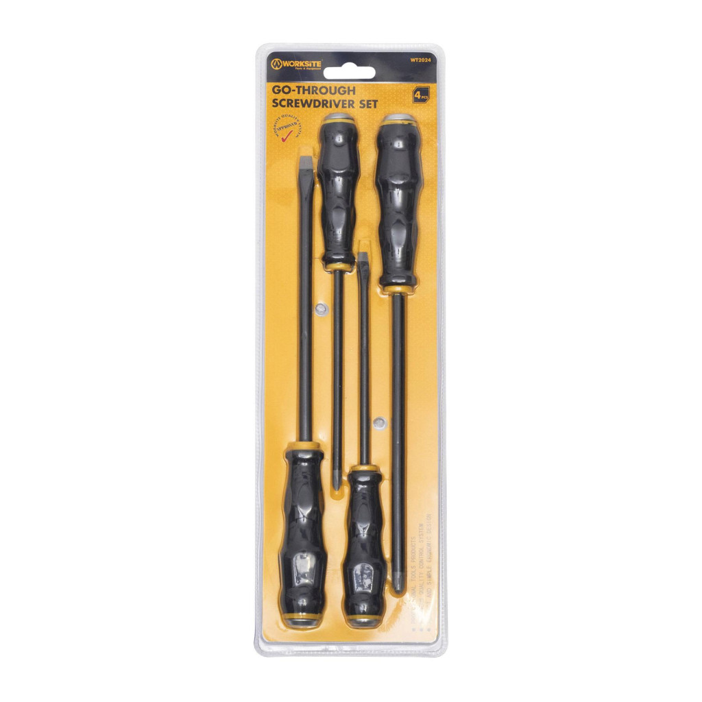 WORKSITE WT2024 átmenő csavarhúzó készlet, hosszú szárú, 4db, lapos és csillag fejek, mágneses és edzett