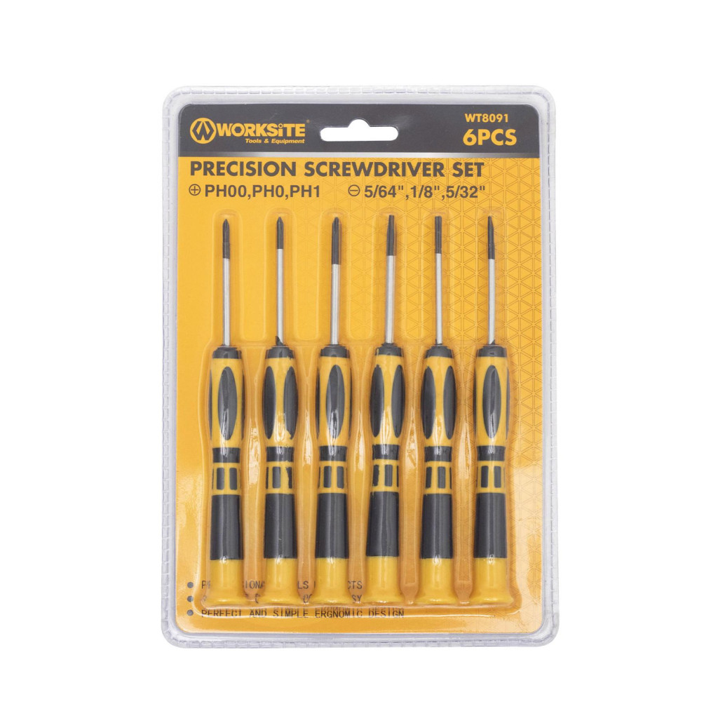 WORKSITE WT8091 műszerész csavarhúzó készlet, 6db, lapos és Phillips csillag fejek, precíziós feladatokhoz