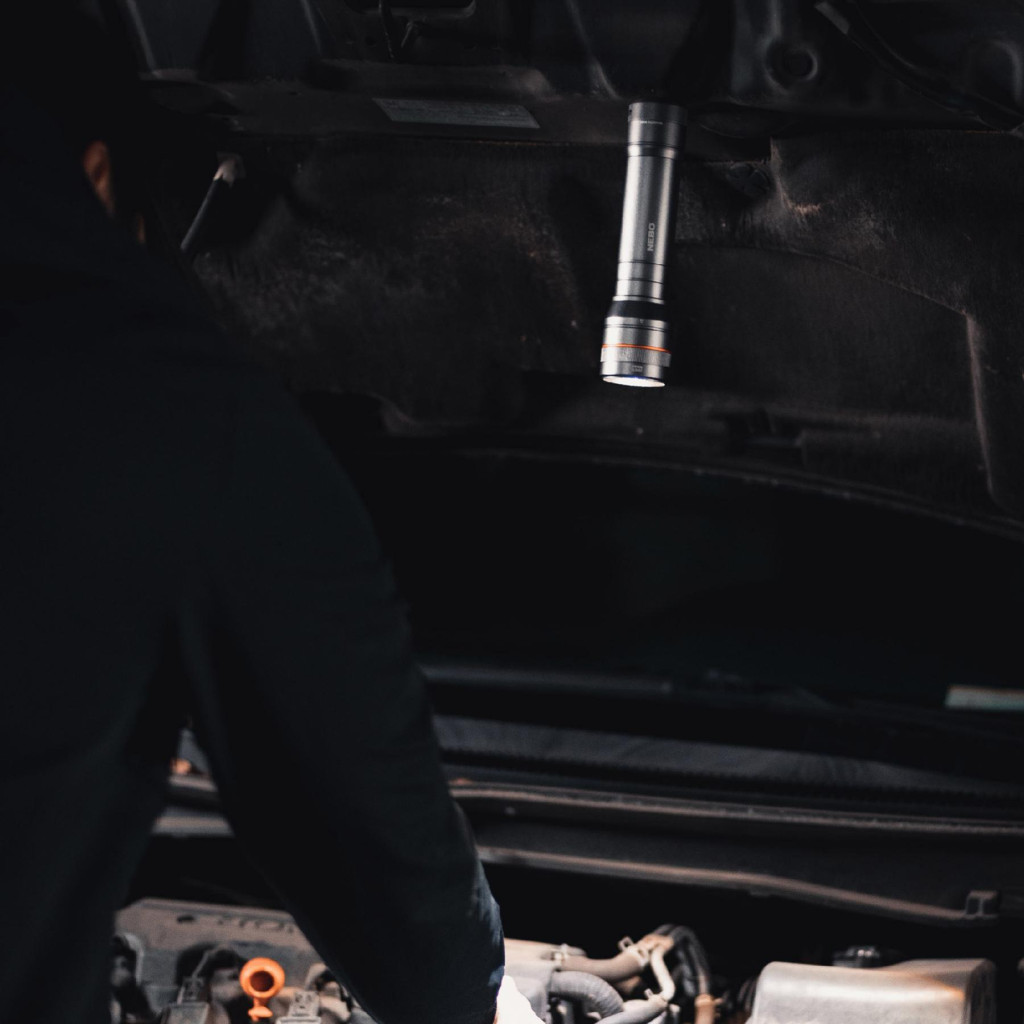 A NEWTON 1000 zseblámpa 4 darab 1,5 V (AAA) elemmel működik, amelyeket a csomag tartalmaz. A zseblámpa kompakt méretének (összetolva 18 x ∅4,6 cm) köszönhetően könnyen magával viheti, így mindig kéznél lesz a szükséges fényforrás.